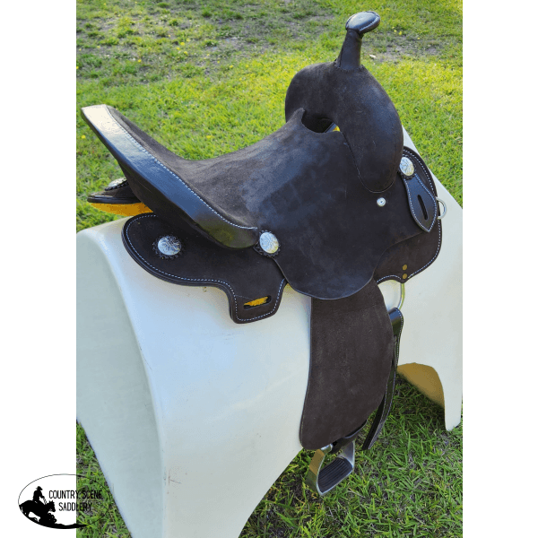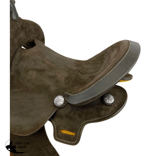 This saddle was designed with the barrel racer in mind, with a low profile and close contact feel that allows you to communicate effectively with your horse as you navigate tight turns and fast straightaways. The rough out leather provides plenty of grip, so you can stay securely in the saddle even when your horse is at full speed. And because the saddle is made from high-quality materials, it's tough enough to withstand the rigors of regular use.