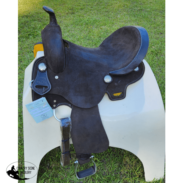Another great feature of this saddle is the short rounded skirt with in-skirt rigging, which allows for greater freedom of movement and reduces bulk from under the rider’s legs. Completed with silver flower conchos for a touch of bling. Includes off billet and tie strap, aluminum barrel stirrups with rubber tread, and quick change stirrup buckles. Overall, this 15" all over rough out barrel saddle is an excellent choice for anyone who loves barrel racing and wants a saddle that can help them perform at their best.