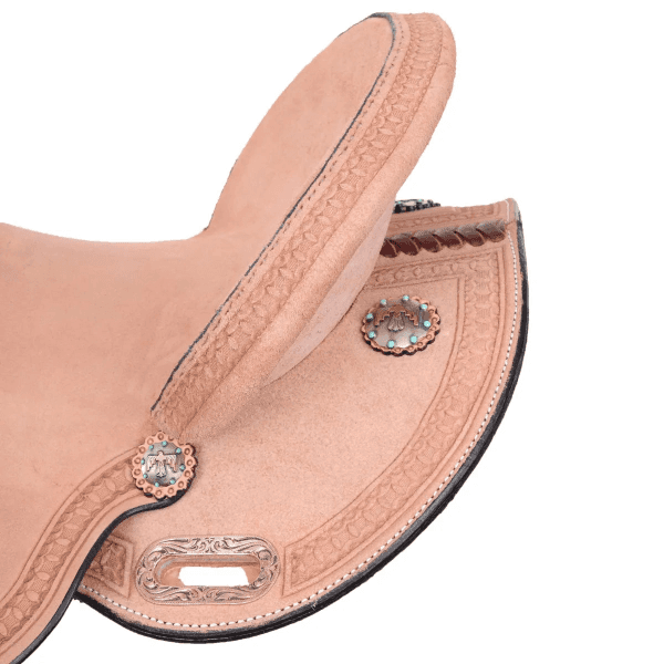 Our all-new Windsor Barrel Saddle is the perfect blend of ranch and arena style! Featuring our ALL-NEW Cobra tree, the Windsor barrel saddle provides our most aggressive locked-in feeling seat. The Windsor also features an ultra-lite roughout that showcases Diamond Waffle border tooling and gorgeous custom Thunderbird Gem conchos. This saddle will position the rider with a deep seat and offers a 7/8 in-skirt rigging to offer more balance when cinching. The Windsor Barrel Saddle is sure to help you ride your best!