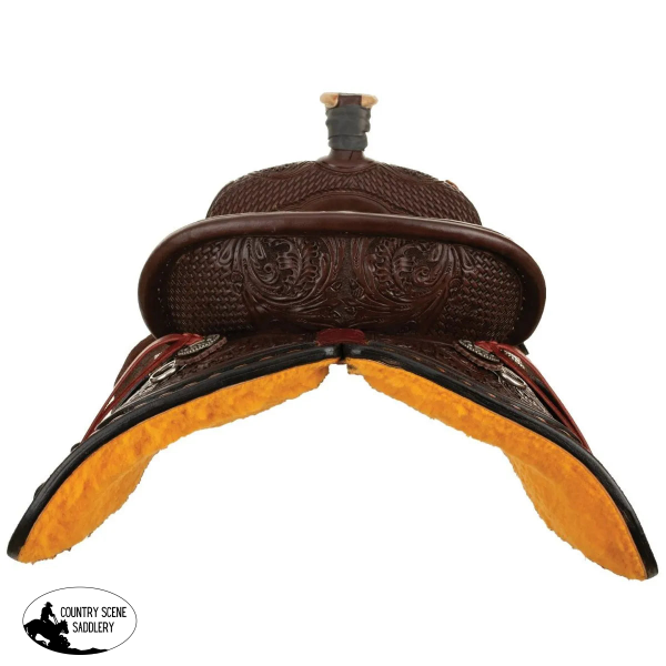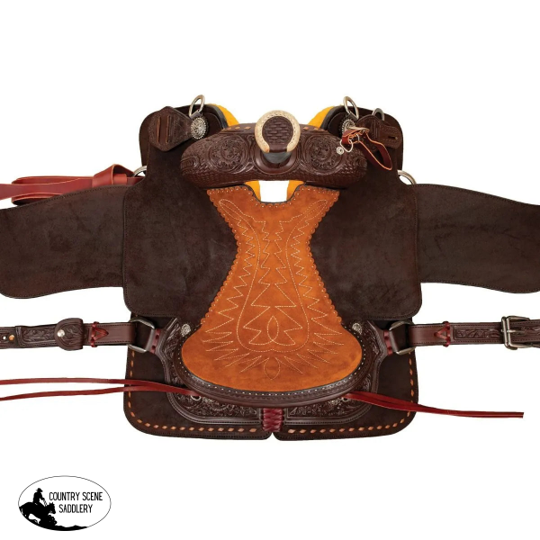 The Team Camarillo Lady Pro Roper was made with a ladies' build in mind. Designed with a narrow twist on a Kevlar-reinforced Camarillo Pro Roper saddle tree. Wider fenders help keep legs balanced and under the rider, and STS stirrups guarantee safety and balance. Added features like the rubber horn wrap, rope holder, double-slotted latigo keepers that keep tie straps in place, double breast collar dees for options in breast collar placement, real 100% wool fleece, and included rear flank cinch finish out this saddles excellent feature line up.