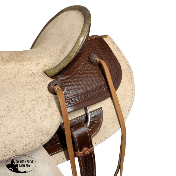 The Buffalo Saddlery Hard Seat Light Oiled Roughout Roper Style Saddle with dark accents in a 16-inch seat is a versatile and durable piece of equestrian equipment. Crafted with high-quality materials, this saddle offers both style and functionality for riders. The light oiled finish gives it a classic look, while the roughout texture provides extra grip and stability during rides. The dark accents add a touch of sophistication to the overall design.