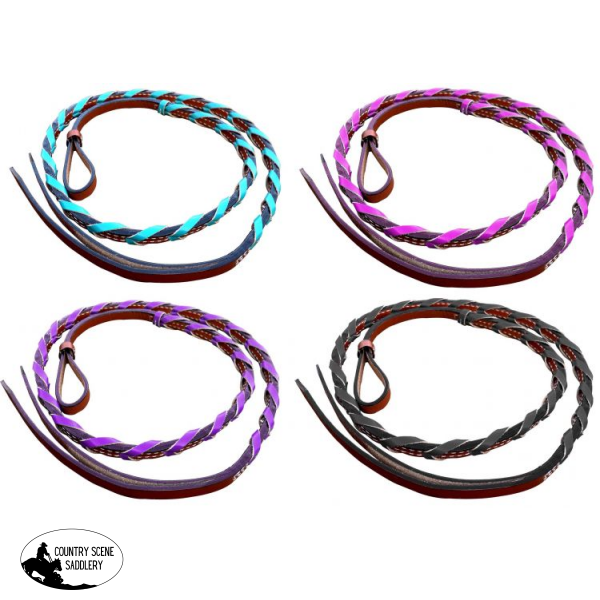 Showman ® Medium Leather Over & Under With Colored Braided Accents. Measures approx. 4' long x 1/2" wide. Made by Showman ® products.