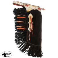 Showman ® Brown suede leather chinks with Hair on Cowhide Accent. Easily adjust with a three-buckle closure on each leg and an adjustable buckle front.