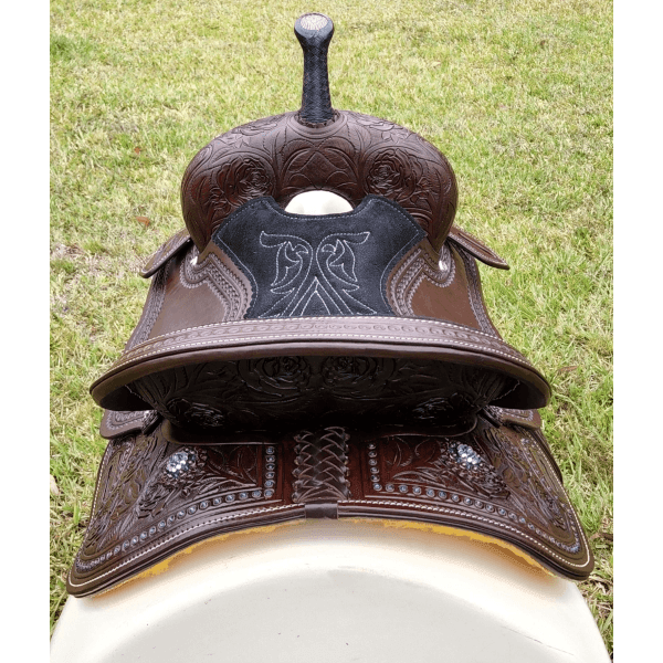 Our beautiful saddles are designed by us here in Australia and are manufactured in India. Each saddle is hand made and assembled from the tree to the carving on the saddle. Each saddle uses quality Argentinean leather which is beautifully stitched and finished. The trees in the saddle are able to be made to customer specifications and out of a range of quality materials.