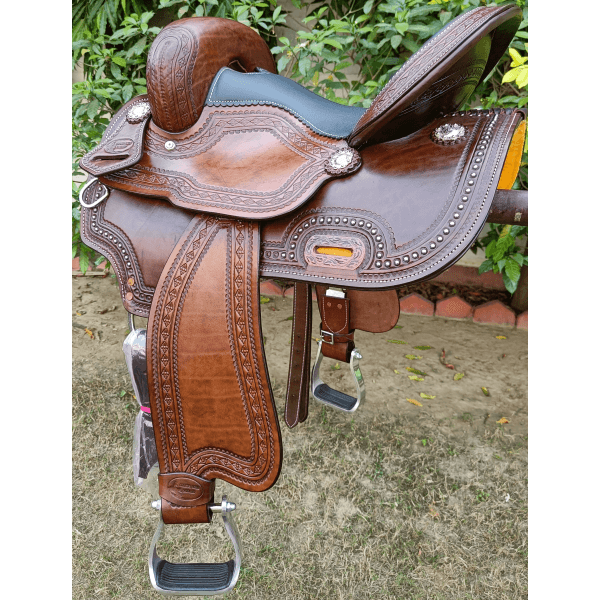 Our beautiful saddles are designed by us here in Australia and are manufactured in India. Each saddle is hand made and assembled from the tree to the carving on the saddle. Each saddle uses quality Argentinean leather which is beautifully stitched and finished. The trees in the saddle are able to be made to customer specifications and out of a range of quality materials.