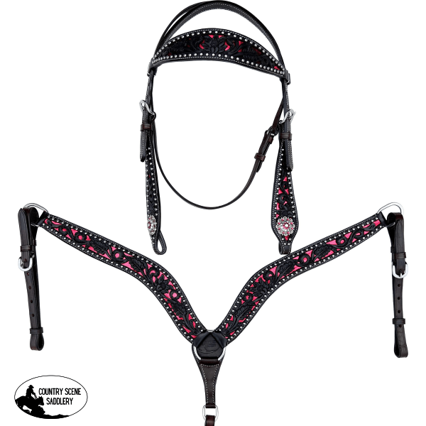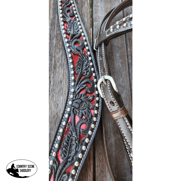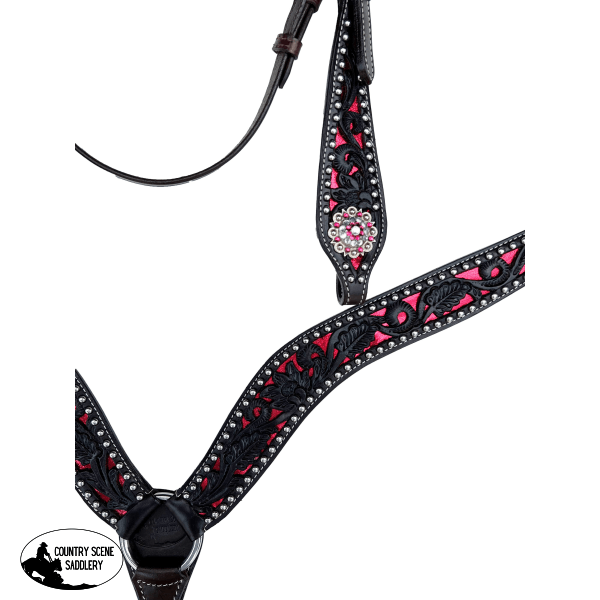CSS Western Inlay Breastcollar and Bridle- Red Glitter Inlay