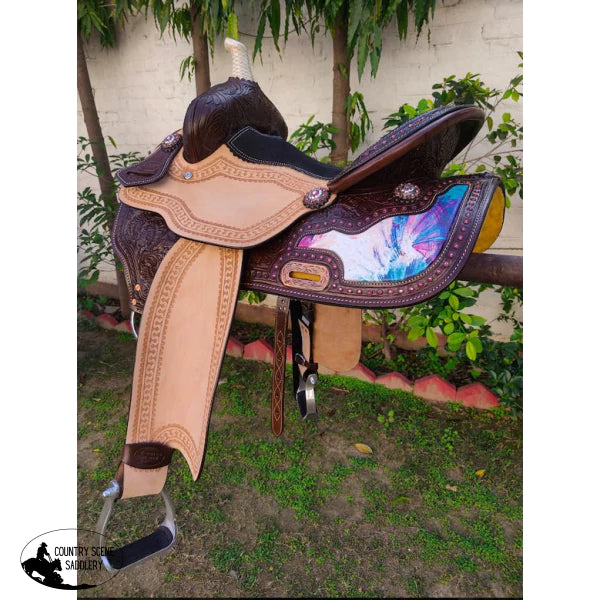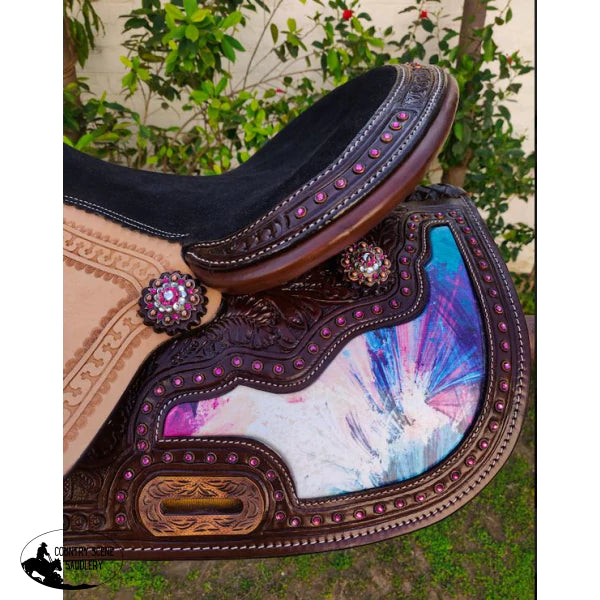 Matching headstall comes with 5/8"x 7' leather split reins.Swell: 13"