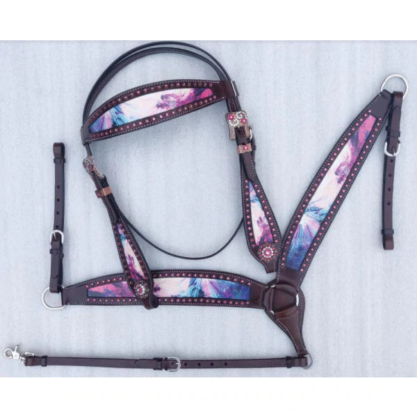 This particular set was Saddle,Saddle Pad,Boots,n bells Latigo n Billet Set,Stirrup Irons and Matching compression hood Bridle and Breastplate ASK US this can be done for all our patterns :)