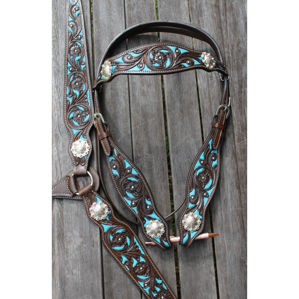 Matching headstall comes with 5/8"x 7' leather split reins.