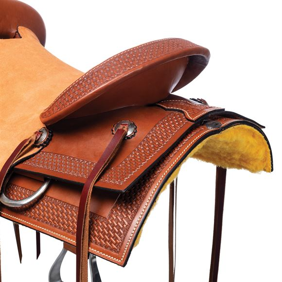 - Smooth Argentine leather skirts and fenders with a hand tooled basketweave border