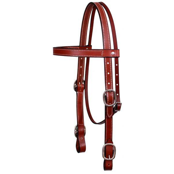 American made 1" Leather double stitched draft horse size headstall with buckled ends. Made in USA.