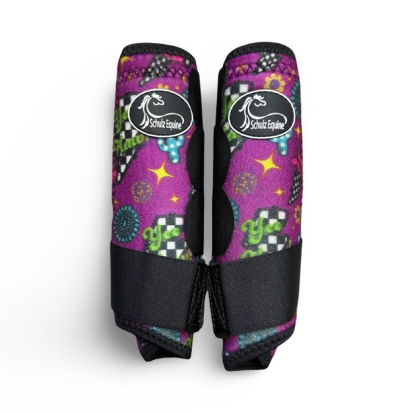 Vibrant protective boots in our Neon Yeehaw! print come in pairs of 2. Contoured fit designed with 4 way stretch vented neoprene for maximum fit and protection and 4 coordinating extra strength velcro straps.Β