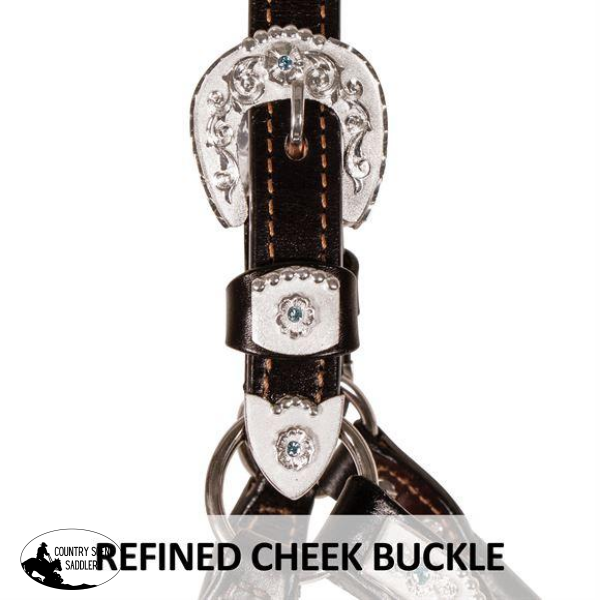 - Refined Cheek Buckle Cheek buckle measures 2" x 2" with sewn in leather keepers to accent your horses head.