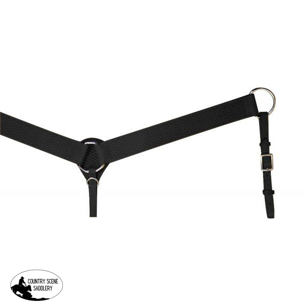 Breastcollar is 2" wide with 5/8" tugs and tie down. Accented with basket tooling.
