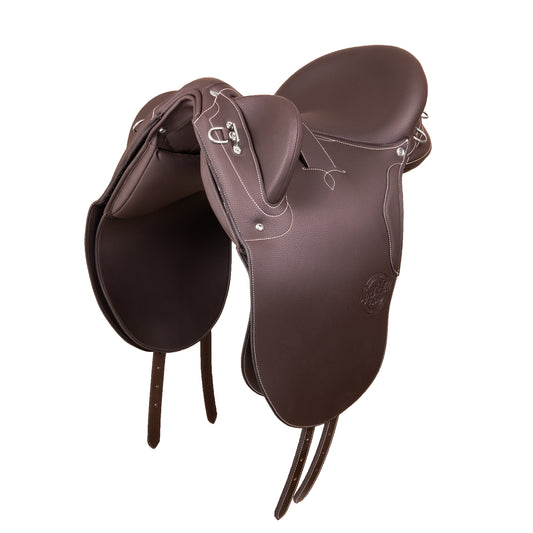 Its broad, supportive flocked panels ensure optimal weight distribution and exceptional close contact, while the long double point girthing system delivers maximum stability. A discreet, ergonomic knee block provides subtle support without restricting movement, and the ultra-soft imported grip leather enhances comfort and security in the saddle.