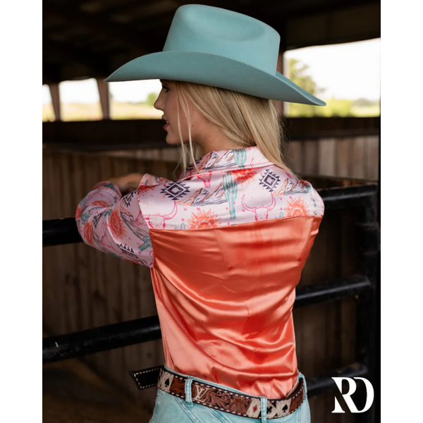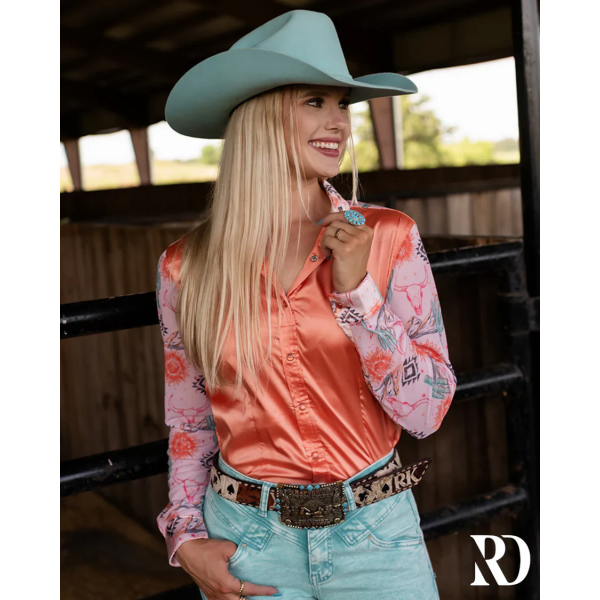 New! CANYON ROSE SATIN MESH PERFORMANCE RODEO SHIRT