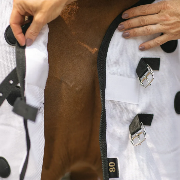 This magnetic therapy sheet has been scientifically proven to enhance horse healing and recovery. It works by improving blood circulation, reducing inflammation, and alleviating soreness. It's especially effective in managing arthritis, muscle tightness, and stiffness caused by exertion or injury. Made of a lightweight mesh, this sheet will ensure your horse is always feeling their best.