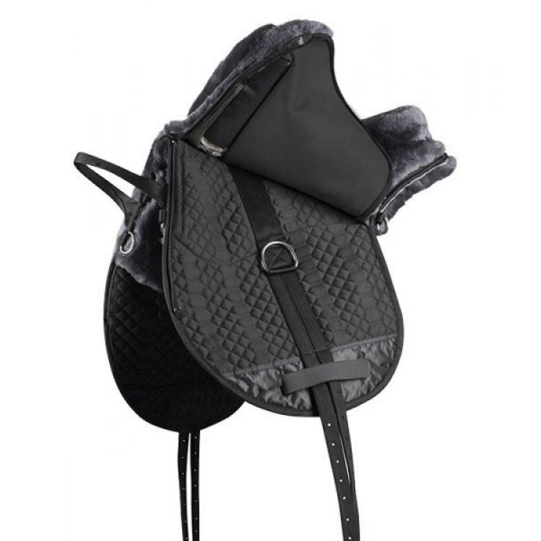 English Fleece Lined Bareback Saddle. This deluxe English bareback saddles is quilted and lined with soft fleece making it perfect for your next trail ride. This saddle takes full advantage of a natural, breathable material, the fleece bareback saddle contours to the animal’s body for a secure, natural feel.