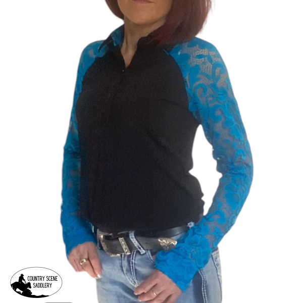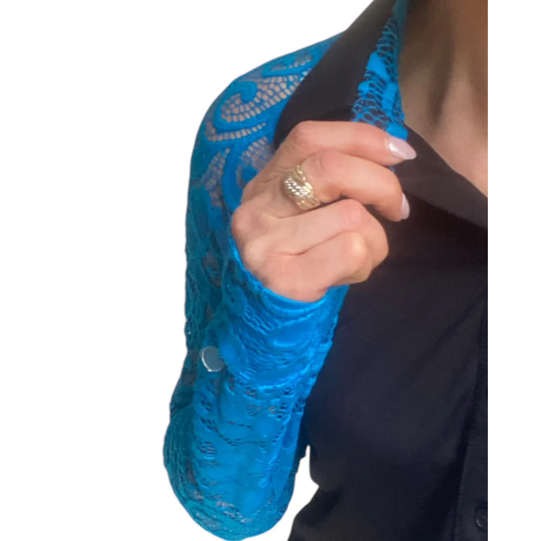 Colour: Black Body Turquoise Stretch Lace Collar & Sleeves