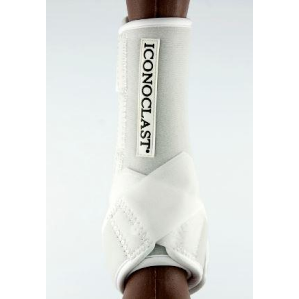 Performance horses need extra support because they are exposed to difficult maneuvers such as hard stops, backing, deep turns, jumps and long, full strides. As a result of performing these maneuvers the hock reaches a fully flexed position and a "vertical load" force is applied to the hock joints and the soft tissue of the lower limbs. Since the suspensory ligament attaches at the top of the cannon bone, just below the lower hock joints, it can become stressed or injured due to these forces from above. The extra height of this new boot will help to save the upper suspensory ligament from injury during these strenuous performance maneuvers. The Iconoclast Extra Tall Orthopedic Sport Boots feature four upper straps in addition to our patented Double Sling Straps which wrap around the base of the fetlock, lifting and cradling it with unparalleled 360-degree lateral support. Iconoclast Boots provide properly balanced support to the vertically moving tissue of the equine leg. No other boot or wrap in the industry can give this much, real, balanced, proper support.