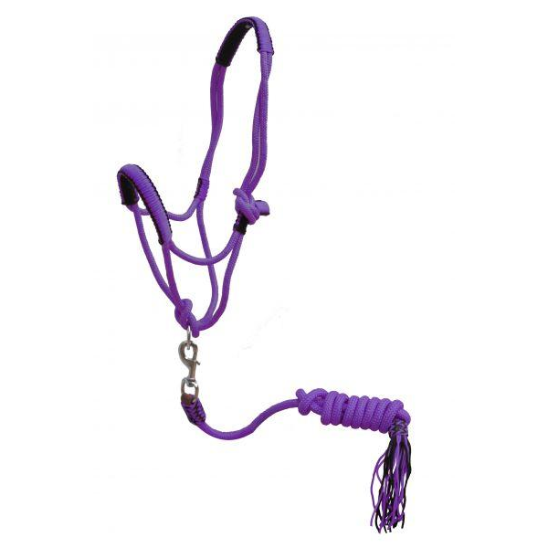 This halter features a wrapped noseband and crown and a removable 7' lead with tassel end.
