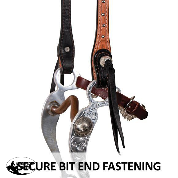 Headstall measures 42" (bit end to bit end) with 4" adjustment on each side to fit most horses' heads.