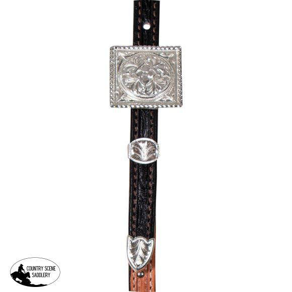 Silver Plate Square cheek buckle with a raised concho inside the square giving a 3D affect, cheek buckles size: 1 3/4" x 2" with silver keeper and tip.