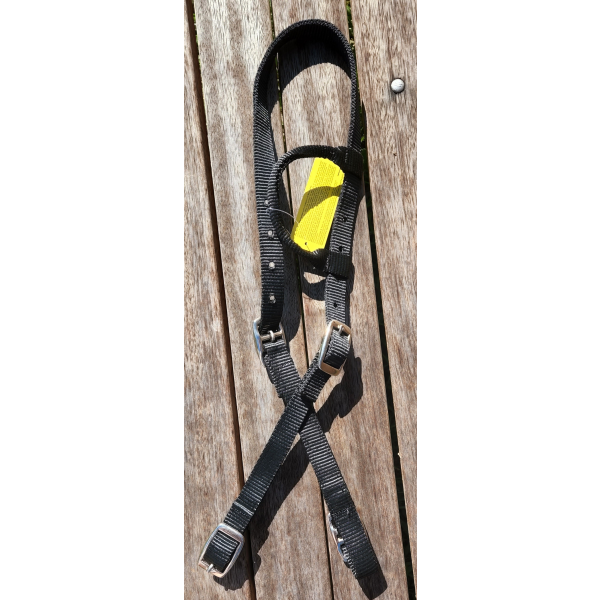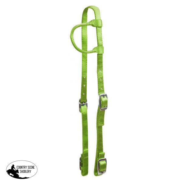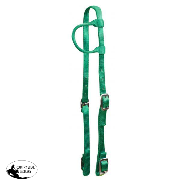 Premium Nylon One Ear Headstall. This headstall is made of soft and durable premium 2 ply nylon material. Easily adjusts on both cheeks with nickle plated buckles and easy change bit loops. Will adjust aprox 15" to 19" (crown to cheek).Β