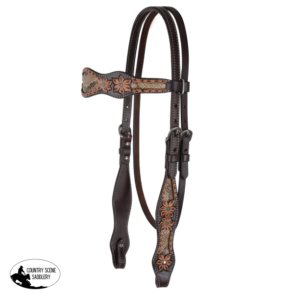 • Our Python Pass wither strap features beautiful hand-tooled flora tooling with painted turquoise accents and faux python print inlays.