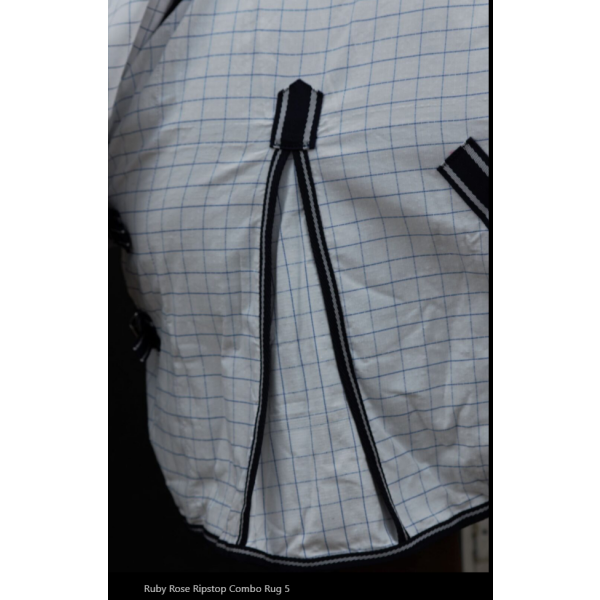 Crafted from premium poly-cotton ripstop fabric, this rug is built tough to handle the harsh Australian climate. The white attached hood and thin blue diamond weave design not only look great but also offer exceptional protection against the elements, keeping your horse cool, dry, and comfortable all day long.