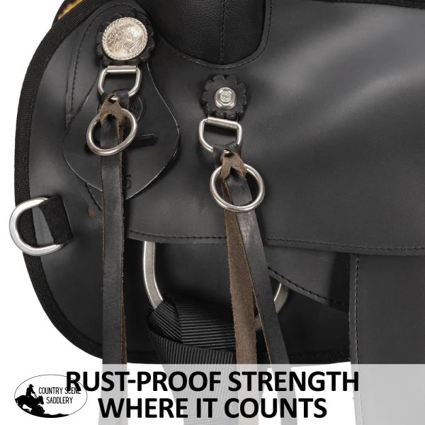 - Rust-Proof Strength Where It Counts Built to last, all hardware is crafted from stainless steel so it won't rust or corrode, even in wet conditions. The in-skirt cinch rigging, breastcollar ring, and hind D-rings are all reinforced to handle whatever the trail throws your way.