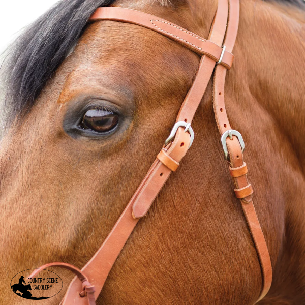 Built tough for everyday training, this single-ply browband headstall is crafted from durable harness leather and offers a secure, reliable fit, ideal for young or fidgety horses. Its water tie bit ends and stainless steel hardware keep everything in place, making it a practical choice for daily use with a snaffle bit.