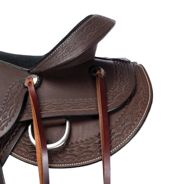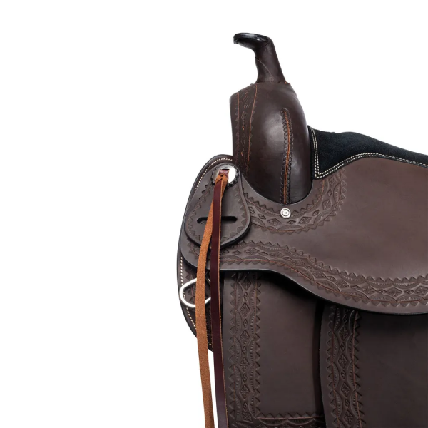 - Detailed Tooling, Intricate Design This saddle stands out with beautifully tooled edges and an intricate leaf pattern, making it a practical trail saddle and a stylish one.