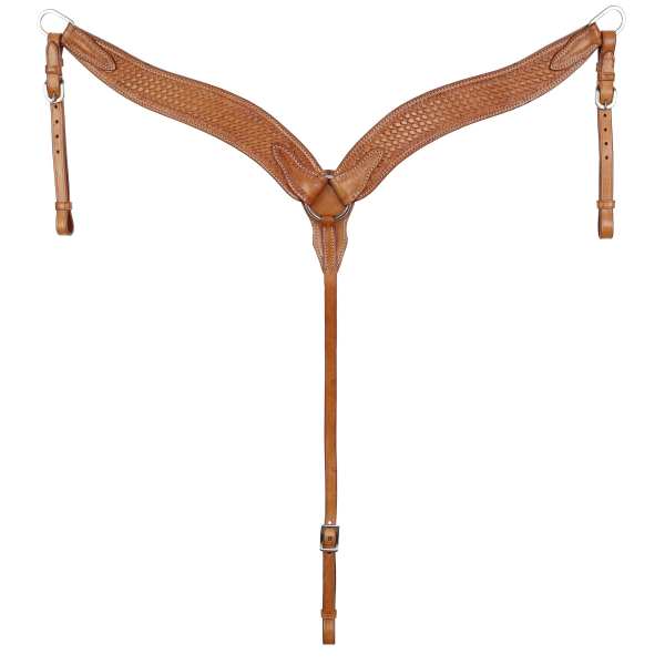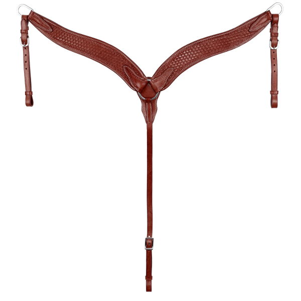 Basketweave Tooled Leather – Classic, detailed tooling in medium, dark, or burgundy oil.