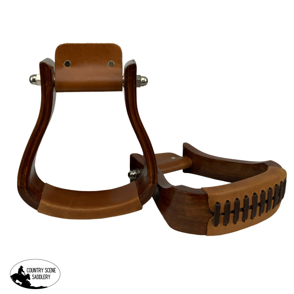 Discover the Showman® Dark Finish Wooden Stirrups, meticulously crafted from six wooden laminates with a sleek dark finish that exudes timeless elegance. Designed for both durability and style, these stirrups feature a leather tread bottom measuring 2 inches wide, providing a secure foothold and enhancing rider stability. With dimensions of 5.5 inches in height and 5 3/8 inches wide, they offer ample support for riders across various disciplines.