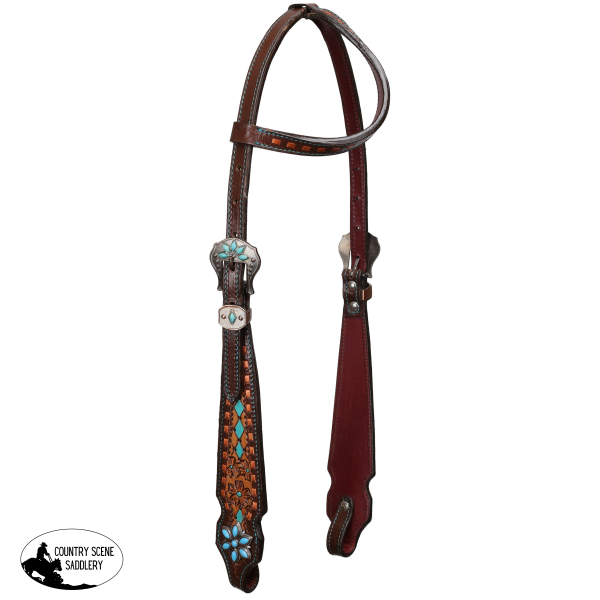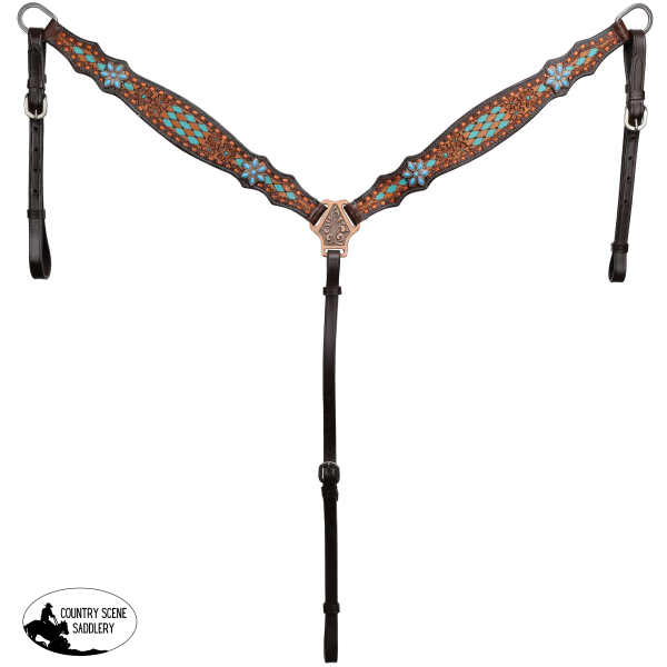 Accent Style: Hand-painted turquoise diamonds, floral tooling, copper buck stitching