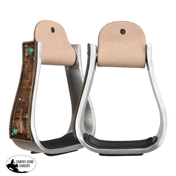 Showman® Frontier Faith Aluminum Stirrups bring a bold blend of Western style and spiritual symbolism to your tack collection. Crafted from lightweight aluminum, these stirrups offer dependable durability without the extra weight, making them ideal for everyday riding or the show pen. The golden copper overlayed sides are engraved with elegant cross designs, paired with turquoise stone accents that add a striking pop of Southwestern color.