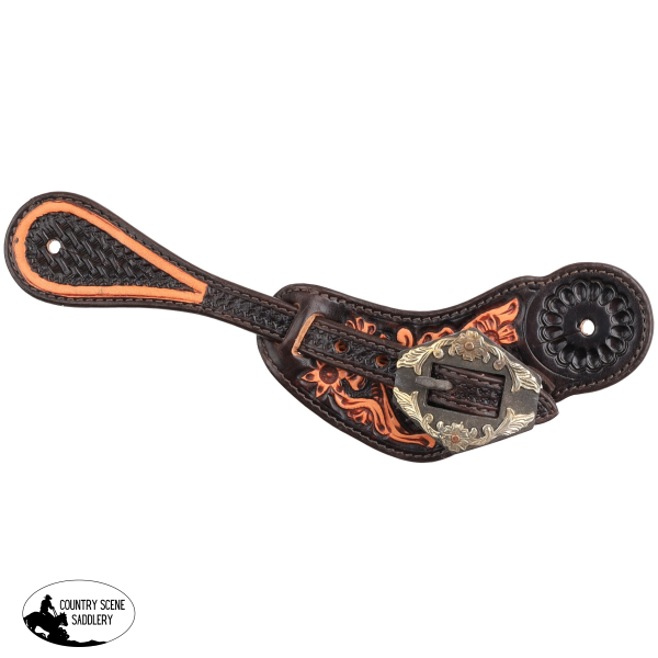 Double-stitched edges reinforce the strap for lasting durability, while antiqued silver floral buckles add a touch of vintage Western elegance. Designed to keep up with your daily rides and barn chores, the Gunsmoke Spur Straps are as dependable as they are stylish — perfect for the cowgirl who’s not afraid to get a little dust on her boots.