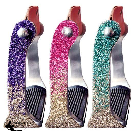 Showman ® Ombre Glitter Overlay Stirrups. This stirrup features lightweight aluminum with a rubber grip tread bottom. Ombre glitter overlay goes from purple, teal, or pink into a gold glitter.