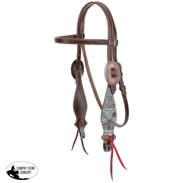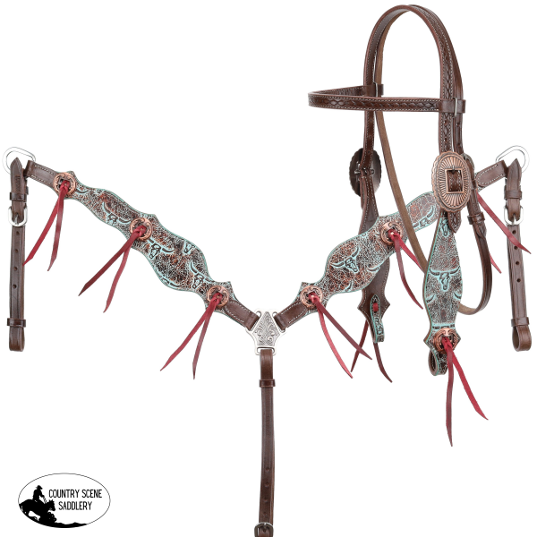 Bring bold, rustic vibes to your tack setup with the Showman® Weathered Steer Browband Headstall and Breastcollar Set—where weathered charm meets working horse gear.