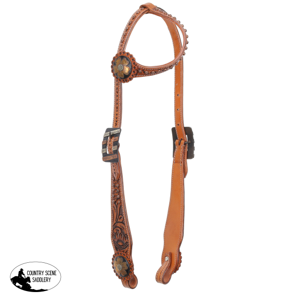 Add a touch of rustic elegance to your tack with the Showman® Wild Daisy Set. Crafted from medium oiled leather, this beautifully tooled set features intricate floral tooling that highlights the natural beauty of the leather while offering a classic Western look. The unique one ear headstall design provides a sleek profile, ideal for riders who prefer minimalism with a touch of flair.