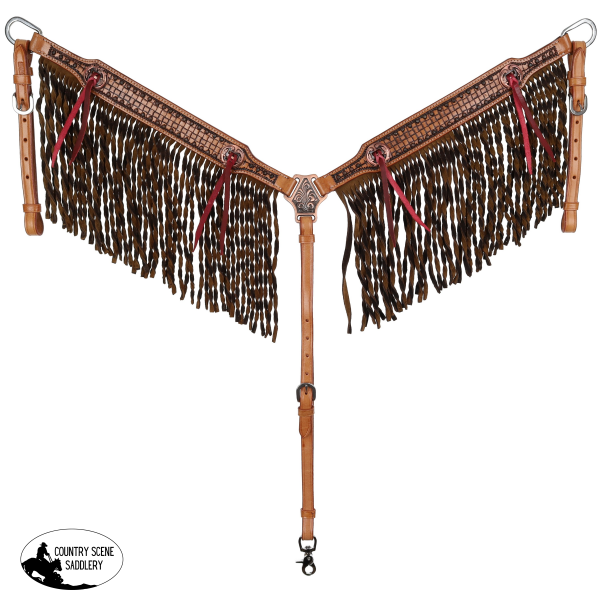 But it’s the accents that steal the show—copper slotted conchos with leather ties, copper stud detailing, and a rich curtain of chocolate twisted fringe that flows with every stride. The slotted concho bit connections offer both style and function, while adjustable cheeks, throatlatch, tugs, and center strap give you that perfect custom fit.
