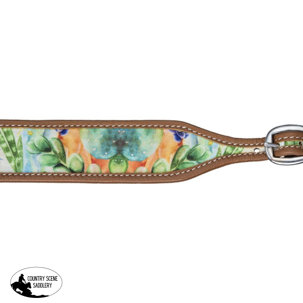 Keep your breastcollar in the correct position with this handy wither strap. Made of quality leather with a single stitched edge and stainless steel hardware. Unique and colorful cactus print design. Scissor snap adjustable ends.
