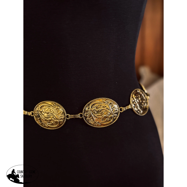 New! Tooled Concho Belt / GOLD