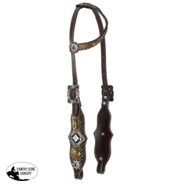 The Showmanยฎ Limited Edition Anaconda Shimmer Set is a bold and dazzling choice for riders who love making a statement. Crafted from premium dark oiled leather, this set is designed to stand out with its iridescent anaconda print overlay that catches the light beautifully, adding depth and shimmer to the overall look. The eye-catching design is further enhanced by yellow iridescent fringe, which flows gracefully with every movement.