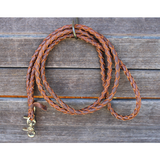 One piece leather braided roping reins with scissor snap ends. 7 ft long.