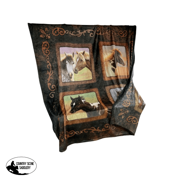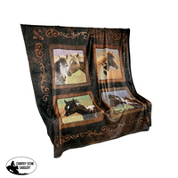This large, cozy blanket makes a perfect present, and is made to resist fading and shedding. The top features a gorgeous artistic image of horses in portraits, with a horseshoe background, while the bottom of it is crafted from a super snuggly, and soft polyester.