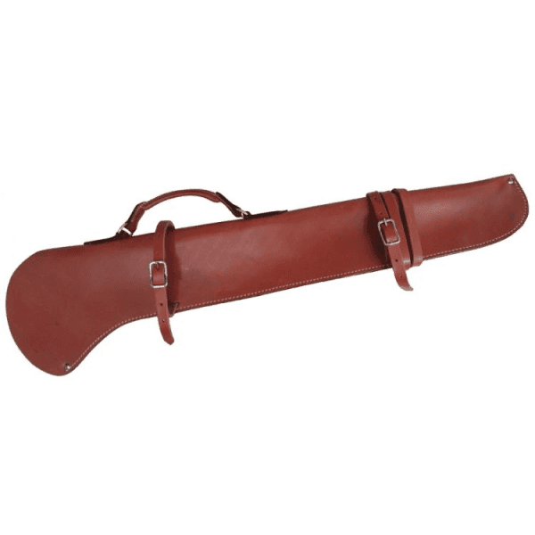 Showman ® 34" leather gun scabbard with silver buckles. These gun scabbards feature silver buckles and feature rolled leather handles for easy carry. Measures 34" long.