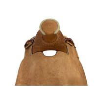 The saddle's 16-inch hard seat features a rawhide pencil roll cantle, and the roper style design offers a secure and stable ride, making it perfect for use in rodeo events, trail riding, and other Western-style riding activities. The saddle is also equipped with a durable and sturdy horn, which provides a convenient and secure handhold for riders.