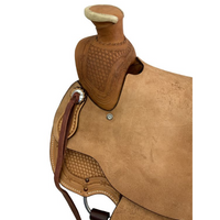 This Showman Argentina Cow Leather Roughout Western Roper Saddle is a top-of-the-line saddle designed for both comfort and performance. Made from premium quality Argentina cow leather, this saddle is built to last and withstand the rigors of daily use. The roughout texture on the saddle provides excellent grip and stability, ensuring that you stay firmly in the saddle at all times.